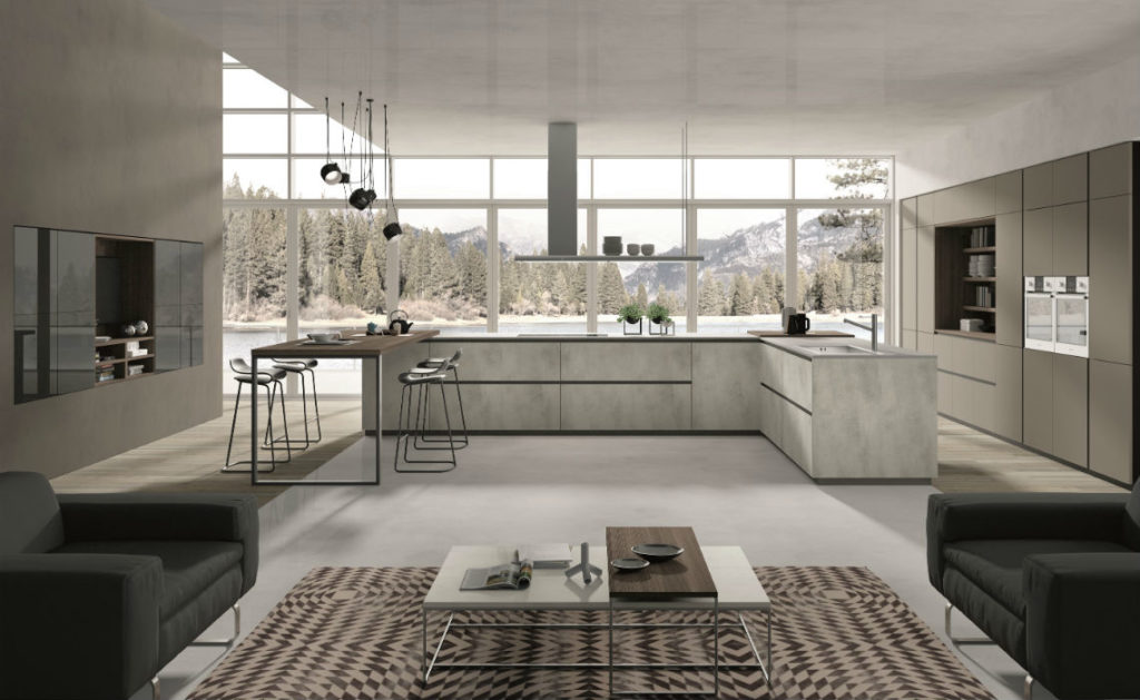 Con il progetto Lab la cucina diventa la protagonista assoluta. I materiali, i volumi e le forme vengono reinterpretati e creano ambienti in cui funzionalità e design ne divengono l’essenza. Quattro finiture legno, tre effetti cemento e tre tinte unite effetto seta al tatto, ciascuno dei quali disponibili anche con il taglio 30° sulla testa dell’anta: un programma di colori e finiture perfettamente combinabili, che permettono infinite soluzioni per progettare la cucina e il living, in perfetta armonia. La nuova modularità H 80 delle basi arricchisce la funzionalità della cucina incrementandone la capienza ma affermando nel contempo un gusto stilistico di notevole impatto estetico.